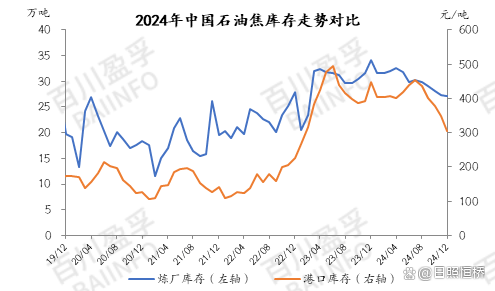 2024年石油焦市场全体表示偏弱,特别是石油焦价钱于4月下旬起头持续回落,行业对于后市悲不雅,炼厂以出货为从,石油焦库存持久处于低位程度。