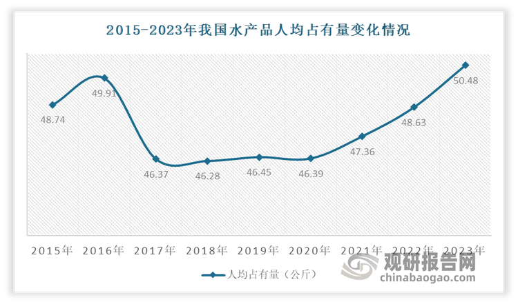颠末多年的成长,我国水产物已获得了较大成长,人均拥有量获得了不竭提拔。数据显示,2022年我国水产物的人均拥有量是48。63公斤,是全球人均拥有量的2。3倍以上。据。到2023年我国水产物人均拥有量50。48千克,远高于世界平均程度。