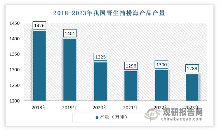 取水产养殖稳步增加分歧的是,近年受渔业资本阑珊和生态管理等要素影响,我国捕捞产量呈现逐年下降态势。数据显示,2023年我国野生捕捞海产物的产量为1288万吨,同比下降1%。